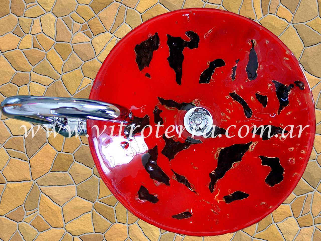Bacha circular de vidrio Frutilla. Realizada con la técnica de vitrofusión. El diseño de la bacha circular de vidrio Frutilla puede ser adaptado (en algunos casos con algunas limitaciones) a otros formatos disponibles en nuestra web. Nuestras bachas de vidrio son productos totalmente artesanales, pintadas a mano, y pueden ser combinados con marcos para espejos, guardas y mesadas haciendo juego con la ellas. En este formato hay varias alternativa de medidas: bacha circular de vidrio 30 cm de diámetro x 10 cm de altura, o 35 cm de diámetro x 12 cm de altura y por último de 40 cm de diámetro x 12 cm de altura (dado que este es una bacha artesanal, puede haber ligeras diferencias en las medidas). Esta bacha circular de vidrio puede personalizarse, ya sea llevando el diseño a otros formatos, o bien cambiando sus colores para adaptarse al espacio en el que irán. Nuestros formatos son originales, dado que los moldes han sido desarrollados en exclusividad por otros artesanos para Vitroterra. Si quisieras un diseño a tu gusto, una vez confirmada tu compra puede ser desarrollado sin costo adicional. Enviándonos fotos de tu baño podemos asesorarte en cuanto a colores y formatos para que tu baño sea el que siempre soñaste. Hacemos envíos tanto al interior como al exterior del país. Los envíos se hacen en cajas de madera de exportación reutilizables, por lo cual tienen un costo adicional. Todas nuestras bachas vienen con su jabonera haciendo juego de regalo. Si quisieras consultarnos por favor envíanos tu mensaje al 0054911 4449-2736, clickeando en el ícono de Whatsapp ya que por este medio podemos intercambiar fotos más fácilmente y te podré responder más rápidamente. Si quisieras imaginar como queda un producto Vitroterra ambientado, visitá en este sitio el sector Ambientación, donde podrás ver fotos de nuestros productos instalados en los baños de nuestros clientes.
