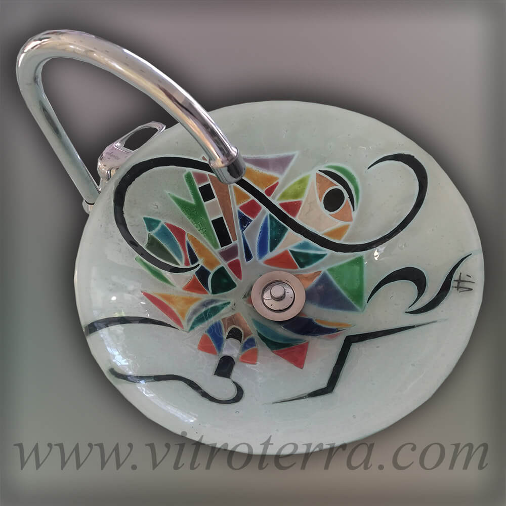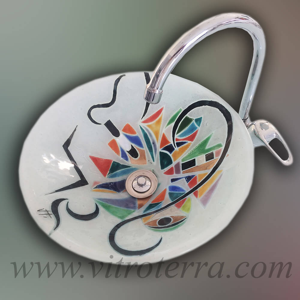 Bacha circular de vidrio Outlander.  Realizada con la técnica de vitrofusión.  El diseño de la bacha circular de vidrio Outlander  puede ser adaptado (en algunos casos con algunas limitaciones) a otros formatos disponibles en nuestra web. Nuestras bachas de vidrio son productos totalmente artesanales, pintadas a mano, y pueden ser combinados con marcos para espejos, guardas  y mesadas haciendo juego con ellas.  En este formato hay varias alternativas de medidas: bacha circular de vidrio 30 cm de diámetro x 10 cm de altura, o  35 cm  de diámetro x 12 cm de altura y por último de 40 cm de diámetro x 12 cm de altura (dado que este es una bacha artesanal, puede haber ligeras diferencias en las medidas).  Esta bacha circular de vidrio puede personalizarse, ya sea llevando el diseño a otros formatos, o bien cambiando sus colores para adaptarse al espacio en el que irán. Nuestros formatos son originales, dado que los moldes han sido desarrollados en exclusividad por otros artesanos para Vitroterra.  Si quisieras un diseño a tu gusto,  una vez confirmada tu compra puede ser desarrollado sin costo adicional.  Enviándonos fotos de tu baño podemos asesorarte en cuanto a colores y formatos para que tu baño sea el que siempre soñaste. Hacemos envíos tanto al interior como al exterior del país.  Los envíos se hacen en cajas de madera de exportación reutilizables, por lo cual tienen un costo adicional.  Todas nuestras bachas vienen con su jabonera haciendo juego de regalo.  Si quisieras consultarnos por favor envíanos tu mensaje al 0054911 4449-2736, clickeando en el ícono de Whatsapp ya que por este medio podemos intercambiar fotos más fácilmente y te podré responder más rápidamente.  Si quisieras imaginar como queda un producto Vitroterra ambientado, visitá en este sitio el sector Ambientación, donde podrás ver fotos de nuestros productos instalados en los baños de nuestros clientes.