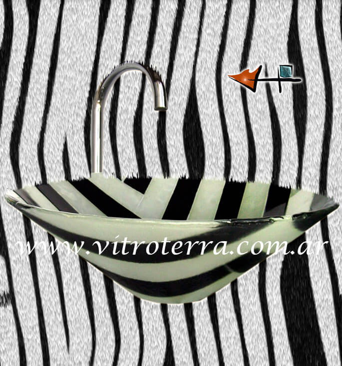 Bacha circular de vidrio Rayas. Realizada con la técnica de vitrofusión. El diseño de la bacha circular de vidrio Rayas puede ser adaptado (en algunos casos con algunas limitaciones) a otros formatos disponibles en nuestra web. Nuestras bachas de vidrio son productos totalmente artesanales, pintadas a mano, y pueden ser combinados con marcos para espejos, guardas y mesadas haciendo juego con la ellas. En este formato hay varias alternativa de medidas: bacha circular de vidrio 30 cm de diámetro x 10 cm de altura, o 35 cm de diámetro x 12 cm de altura y por último de 40 cm de diámetro x 12 cm de altura (dado que este es una bacha artesanal, puede haber ligeras diferencias en las medidas). Esta bacha circular de vidrio puede personalizarse, ya sea llevando el diseño a otros formatos, o bien cambiando sus colores para adaptarse al espacio en el que irán. Nuestros formatos son originales, dado que los moldes han sido desarrollados en exclusividad por otros artesanos para Vitroterra. Si quisieras un diseño a tu gusto, una vez confirmada tu compra puede ser desarrollado sin costo adicional. Enviándonos fotos de tu baño podemos asesorarte en cuanto a colores y formatos para que tu baño sea el que siempre soñaste. Hacemos envíos tanto al interior como al exterior del país. Los envíos se hacen en cajas de madera de exportación reutilizables, por lo cual tienen un costo adicional. Todas nuestras bachas vienen con su jabonera haciendo juego de regalo. Si quisieras consultarnos por favor envíanos tu mensaje al 0054911 4449-2736, clickeando en el ícono de Whatsapp ya que por este medio podemos intercambiar fotos más fácilmente y te podré responder más rápidamente. Si quisieras imaginar como queda un producto Vitroterra ambientado, visitá en este sitio el sector Ambientación, donde podrás ver fotos de nuestros productos instalados en los baños de nuestros clientes.