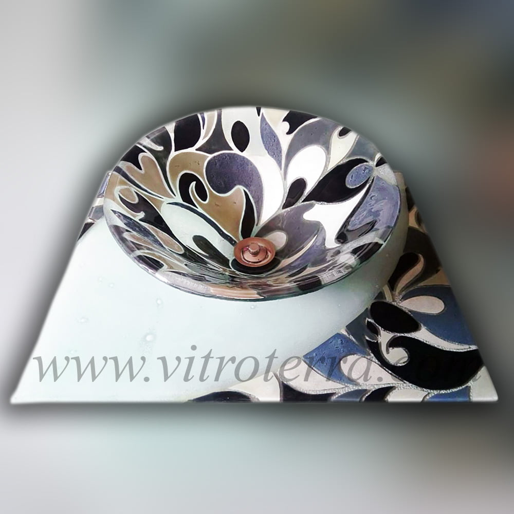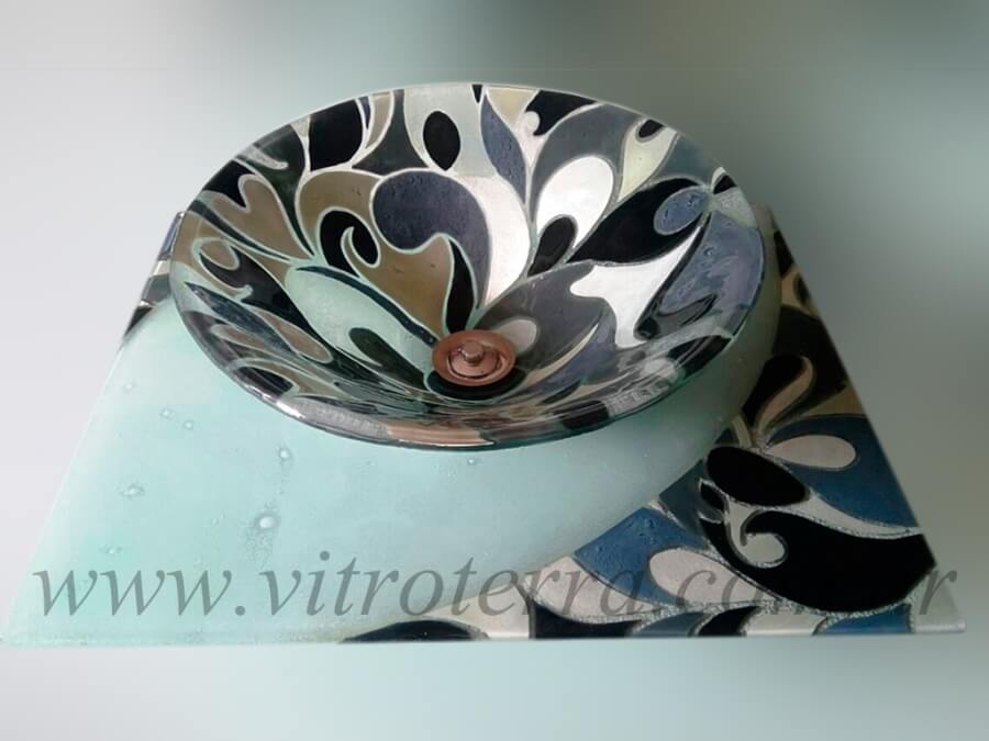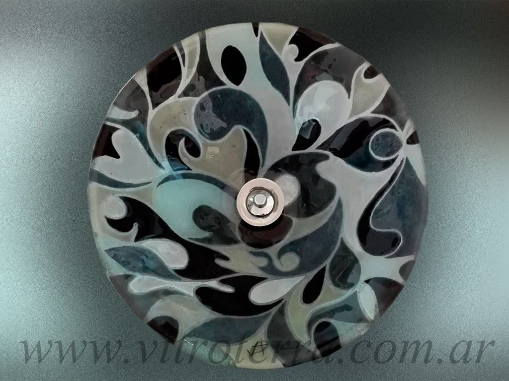 Bacha circular de vidrio Marie.  Realizada con la técnica de vitrofusión.  El diseño de la bacha circular de vidrio Marie  puede ser adaptado (en algunos casos con algunas limitaciones) a otros formatos disponibles en nuestra web. Nuestras bachas de vidrio son productos totalmente artesanales, pintadas a mano, y pueden ser combinados con marcos para espejos, guardas  y mesadas haciendo juego con la ellas.  En este formato hay varias alternativa de medidas: bacha circular de vidrio 30 cm de diámetro x 10 cm de altura, o  35 cm  de diámetro x 12 cm de altura y por último de 40 cm de diámetro x 12 cm de altura (dado que este es una bacha artesanal, puede haber ligeras diferencias en las medidas).  Esta bacha circular de vidrio puede personalizarse, ya sea llevando el diseño a otros formatos, o bien cambiando sus colores para adaptarse al espacio en el que irán. Nuestros formatos son originales, dado que los moldes han sido desarrollados en exclusividad por otros artesanos para Vitroterra.  Si quisieras un diseño a tu gusto,  una vez confirmada tu compra puede ser desarrollado sin costo adicional.  Enviándonos fotos de tu baño podemos asesorarte en cuanto a colores y formatos para que tu baño sea el que siempre soñaste. Hacemos envíos tanto al interior como al exterior del país.  Los envíos se hacen en cajas de madera de exportación reutilizables, por lo cual tienen un costo adicional.  Todas nuestras bachas vienen con su jabonera haciendo juego de regalo.  Si quisieras consultarnos por favor envíanos tu mensaje al 0054911 4449-2736, clickeando en el ícono de Whatsapp ya que por este medio podemos intercambiar fotos más fácilmente y te podré responder más rápidamente.  Si quisieras imaginar como queda un producto Vitroterra ambientado, visitá en este sitio el sector Ambientación, donde podrás ver fotos de nuestros productos instalados en los baños de nuestros clientes.