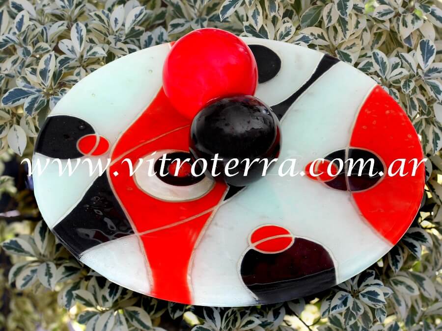 Centro circular de vidrio Fecundidad. Realizado con la técnica de vitrofusión en 50 cm de diámetro. El diseño del centro circular de vidrio Fecundidad puede ser adaptado a otros productos que se encuentran en nuestra web. Nuestros centros de mesa circulares de vidrio son productos totalmente artesanales, pintados a mano y en algunos casos incorporan detalles de diferentes metales o vidrios especiales de colores que los hacen únicos. Este centro de mesa puede hacerse en distintos diámetros hasta 55 cm, teniendo en cuenta que para adaptarlo a los distintos diámetros pueden ser necesario realizar algunas diferencias en el diseño. También se puede personalizar cambiando sus colores de acuerdo al ambiente en el que irá. El formato de este centro de mesa es único ya que fue desarrollado en exclusividad por otros artesanos para Vitroterra. Si quisieras un diseño a tu gusto, una vez confirmada tu compra puede ser desarrollado sin costo adicional. Enviándonos fotos del espacio en el que irá, podemos asesorarte en cuanto a colores y formatos para que quede como siempre soñaste. Ideal para regalos especiales y exclusivos, podemos diseñar un centro de mesa para momentos y personas únicas. Hacemos envíos tanto al interior como al exterior del país. El embalaje para su envío tiene costo, ya que se hace a medida para cada pieza. Si quisieras consultarnos por favor envíanos tu mensaje al 0054911 4449-2736, clickeando en el ícono de Whatsapp ya que por este medio podemos intercambiar fotos más fácilmente y te podré responder más rápidamente. Si quisieras imaginar como queda un producto Vitroterra ambientado, visitá en este sitio el sector Ambientación, donde podrás ver fotos de algunos de nuestros productos en casa de nuestros clientes. Por favor, tener en cuenta que algunos de nuestros centros de mesa pueden ser piezas únicas, podemos realizar diseños similares pero no exactamente los mismos.